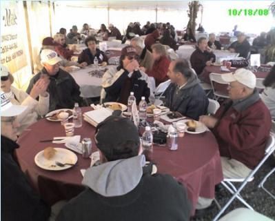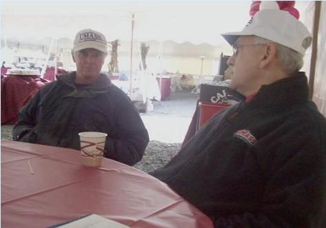 Kevin O'Reilly '69 visits with Vinny Grandonico '73 in the Alumni Tent before the Home Coming Game.