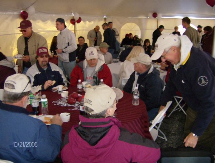 John Cycz '76, Stans friend Dave and Stan Kittredge '72 enjoy the BBQ lunch in the Alumni tent.