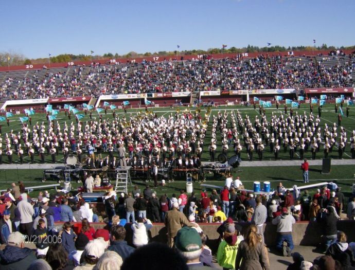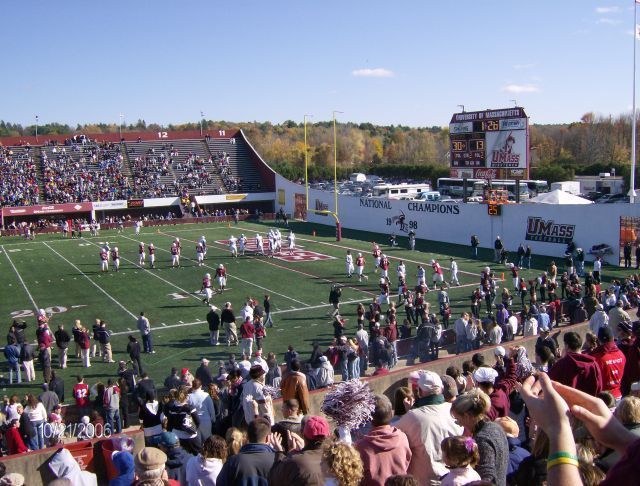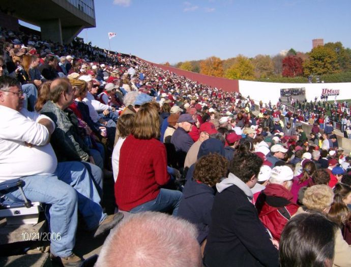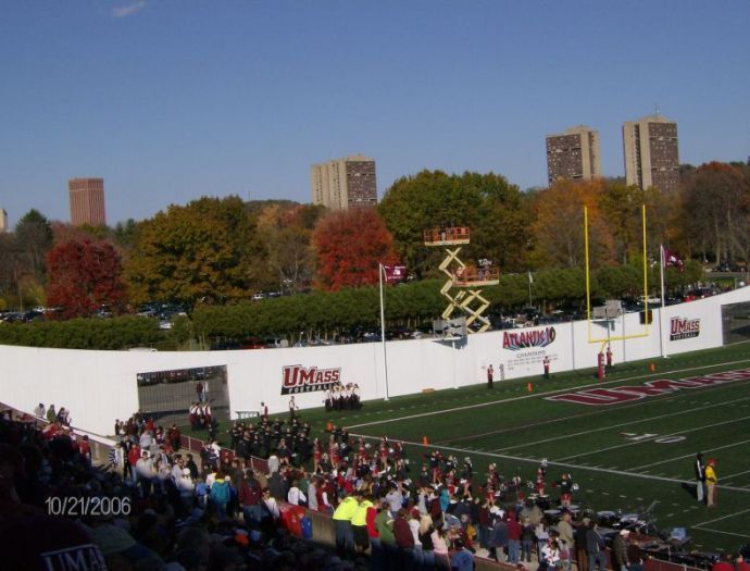 Fantastic UMass Marching Band plays at halftime and after the game to entertain the home crowd.