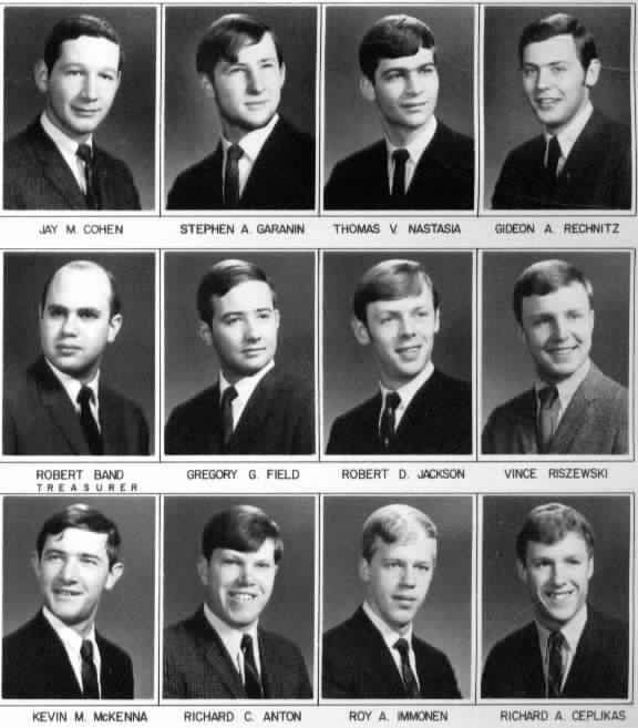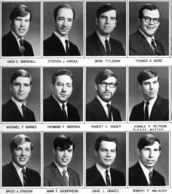 David E. Marshall, Stephen J. Karoll, Benn Titleman, Thomas A. More, Michael F. Barnes, Raymond F. Grzenda, Robert C. Singer, Donald P. Petrone (Pledge Master), Bruce A. Erikson, Mark F. Goodfriend, David L. Graves, Robert P. Malavich