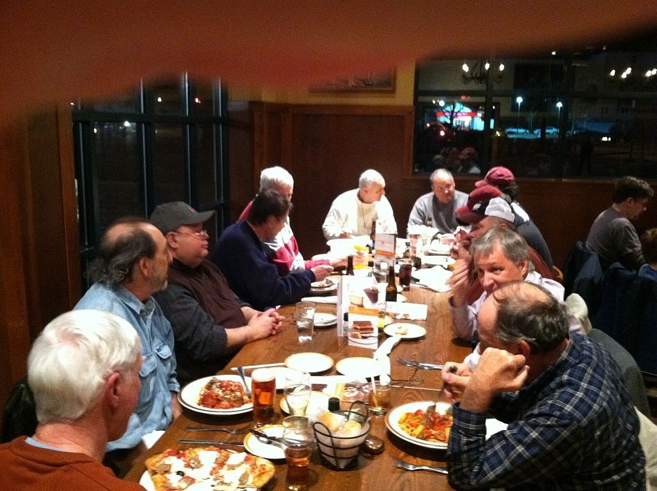 1-28-12 Bertuccis after UMBB. L-R O'Reilly, Goldfarb, Band, White, Spierdowis, Grandonico, Cook, Cycz, Troupe, Kittredge, Harris, Nourse, Bristol on camera.