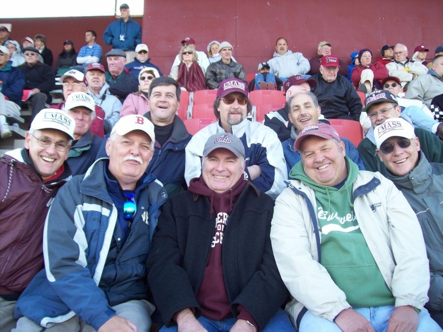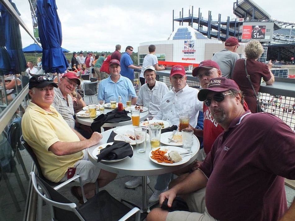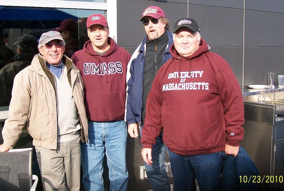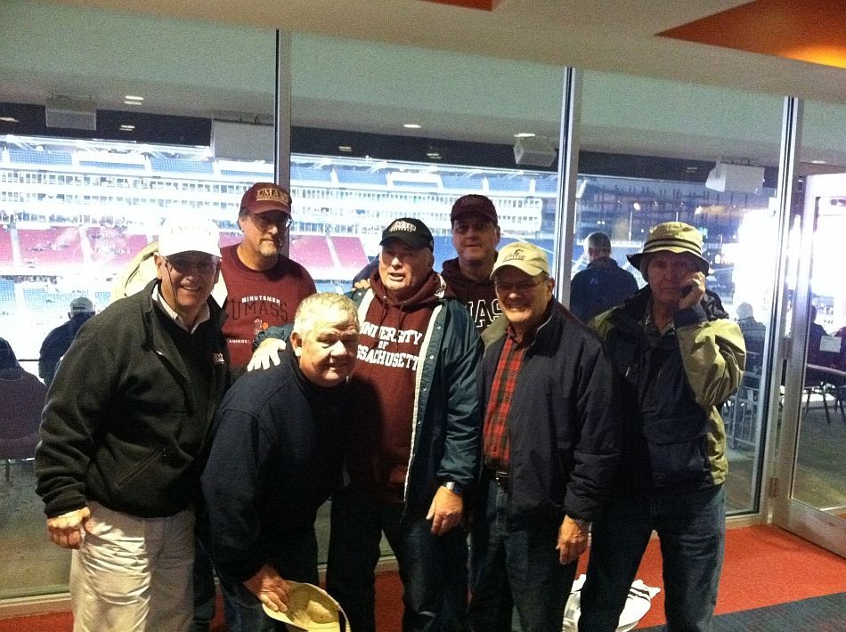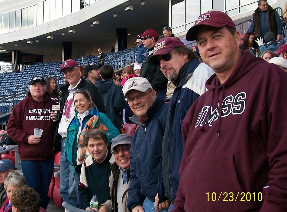 Oct 23, 2010 UMass football played UNH for first of many games in Gillette Stadium, Foxboro. 32,000 attended including L-R Kittredge, Spierdowis & wife Sandy, White, Lousararian, Stans friend Dave, Cycz and Bristol.