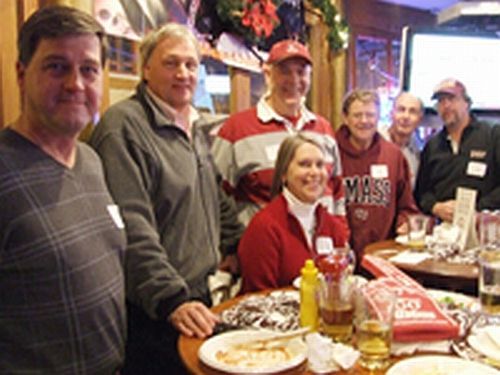 Dec 2010 UM Basketball at the Boston Garden. Bill Spierdowis celebrates 60th with friends in Boston Bar. Bristol, Harris, Bill & Sandy, White, DiLorenzo & Cycz.