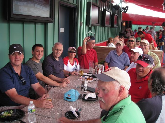 Remys before the RedSox Game. Clockwise Bristol, Vins son Gary, Grandonico, Dee Cammarata, Spierdowis, Kittredge, Sandy Spier, Troupe, Picchi, Shuffain, Goldfarb, Catarius.