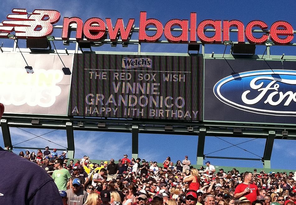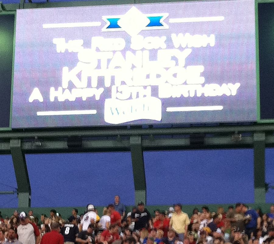 RedSox Jumbotron 4th Inning Message. "The RedSox's Wish Stanley Kittredge a Happy 13th Birthday! Ask Stan about this one."