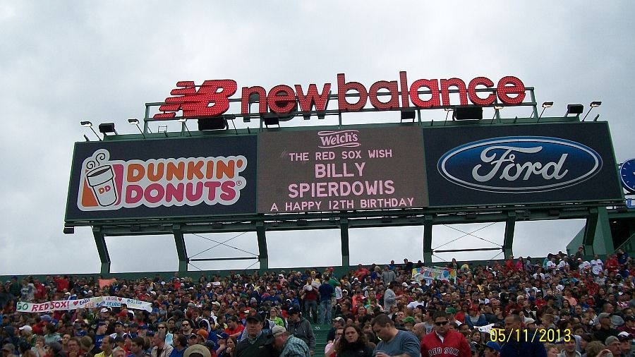 5-11-13 RedSox game birthday wish to Bill Spierdowis on his 12th Birthday!! Spekin struck once again!